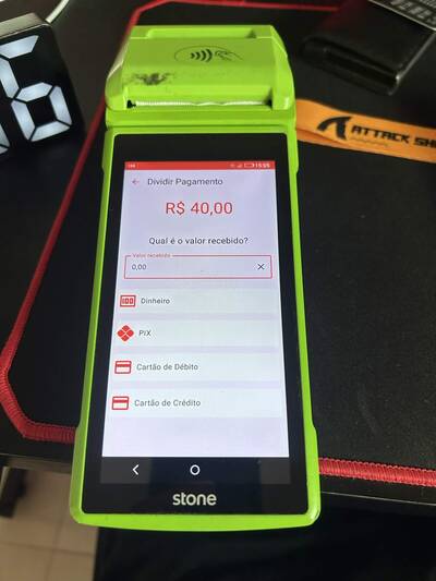 Pagamento dividido: Se o cliente quiser pagar usando mais de uma forma, clique em Dividir pagamento, informe o valor de cada parte e selecione as formas de pagamento correspondentes.