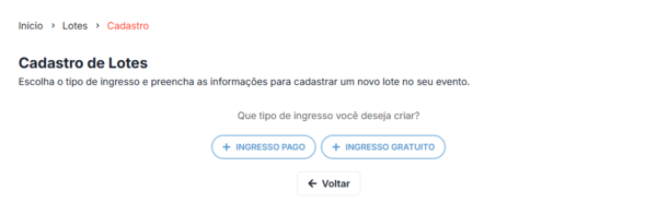 Escolha entre “Ingresso Pago” ou “ingresso Gratuito” de acordo com o evento: