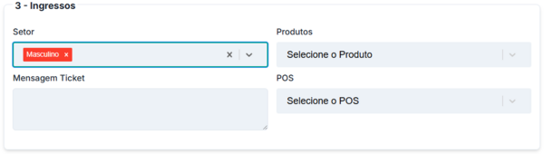 Preencha os campos “Selecione o Setor” e “Selecione a Categoria” de acordo com o que foi colocado em “Ingressos” no página de editar o evento:
