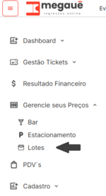 No menu lateral, selecione “Lotes”: