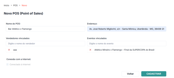 Clique em Cadastrar e pronto, Novo POS criado.
