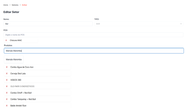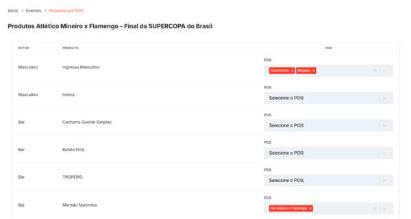 Procure o produto que deseja adicionar no evento, e coloque o POS do bar do evento selecionado e salve.