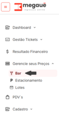 Após isso, no menu lateral selecione “Bar” na aba “Gerencie seus Preços”: