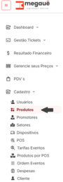 No menu lateral selecione “Produtos” na aba “Cadastro”: