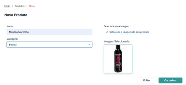 Coloque o “Nome”, selecione a “Categoria” e caso necessario coloque uma “Imagem”: