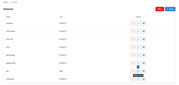 Após isso, no menu lateral selecione “Setores” na aba “Cadastro“Cadastro: