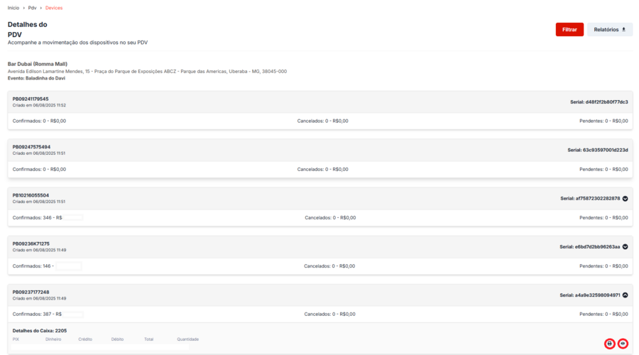 E escolher a máquina que deseja ver o relatório ou o resumo de vendas de cada PDV: